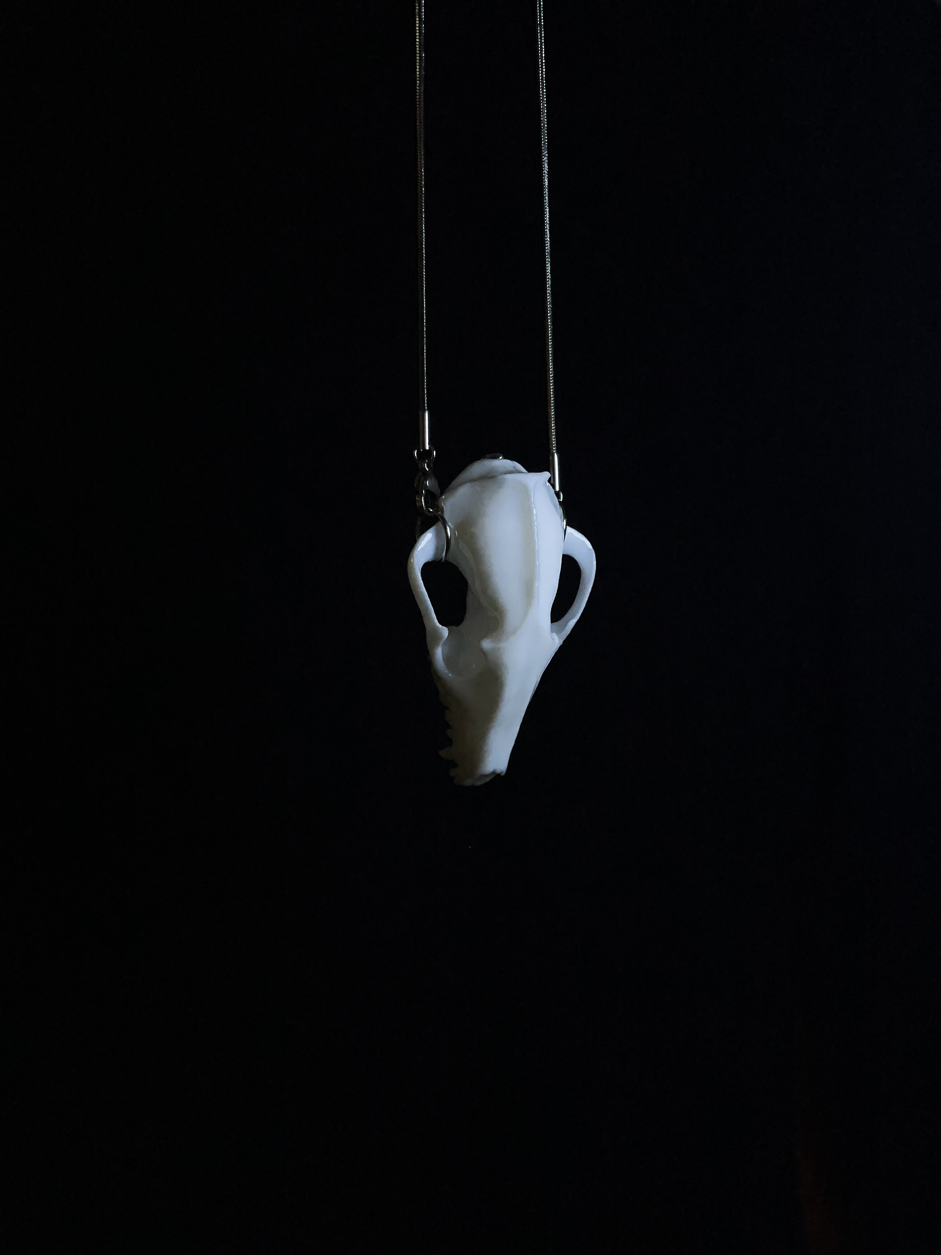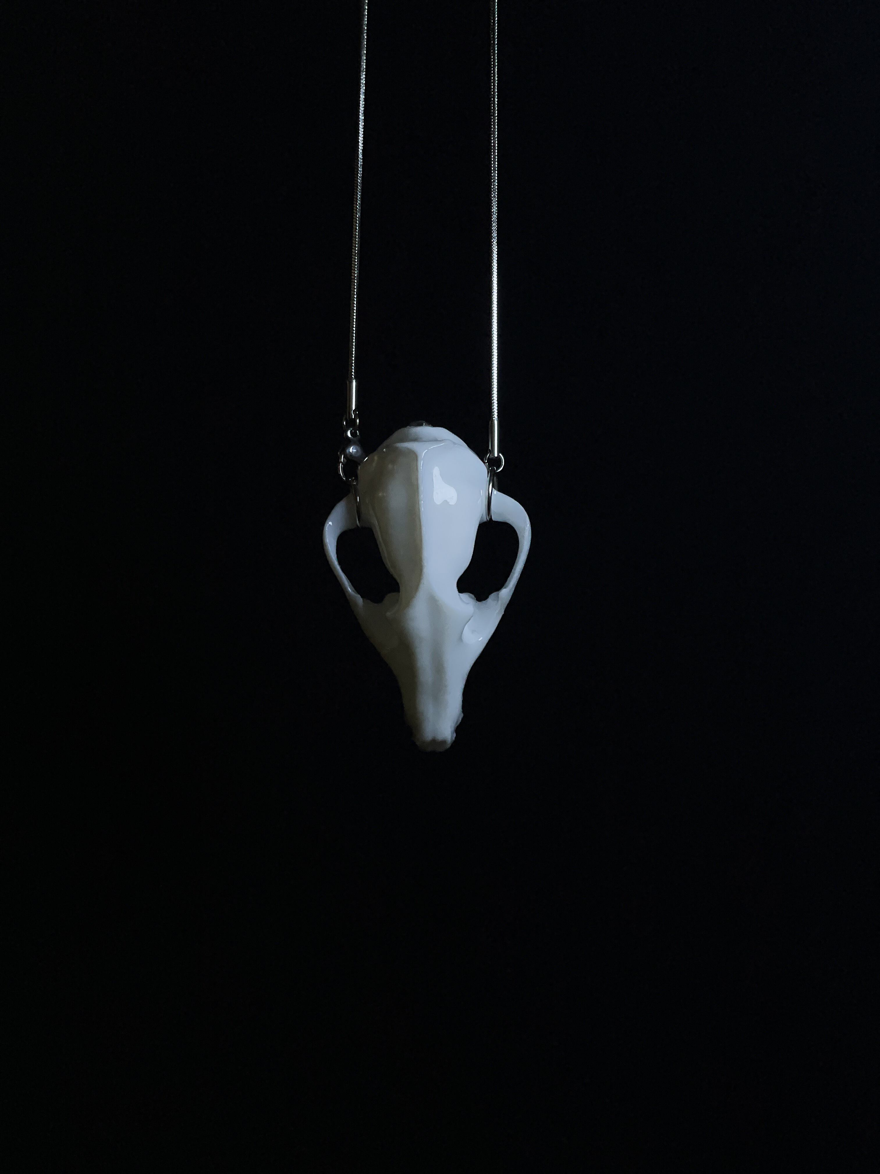 透明な液体から硬化し、職人の手作業によって研磨・改造・設計・加工された作品は、かつて海に存在したかもしれない“非生命的な骨格”を再構築したものです。石油から生まれた素材が、神聖さと死を模倣する。