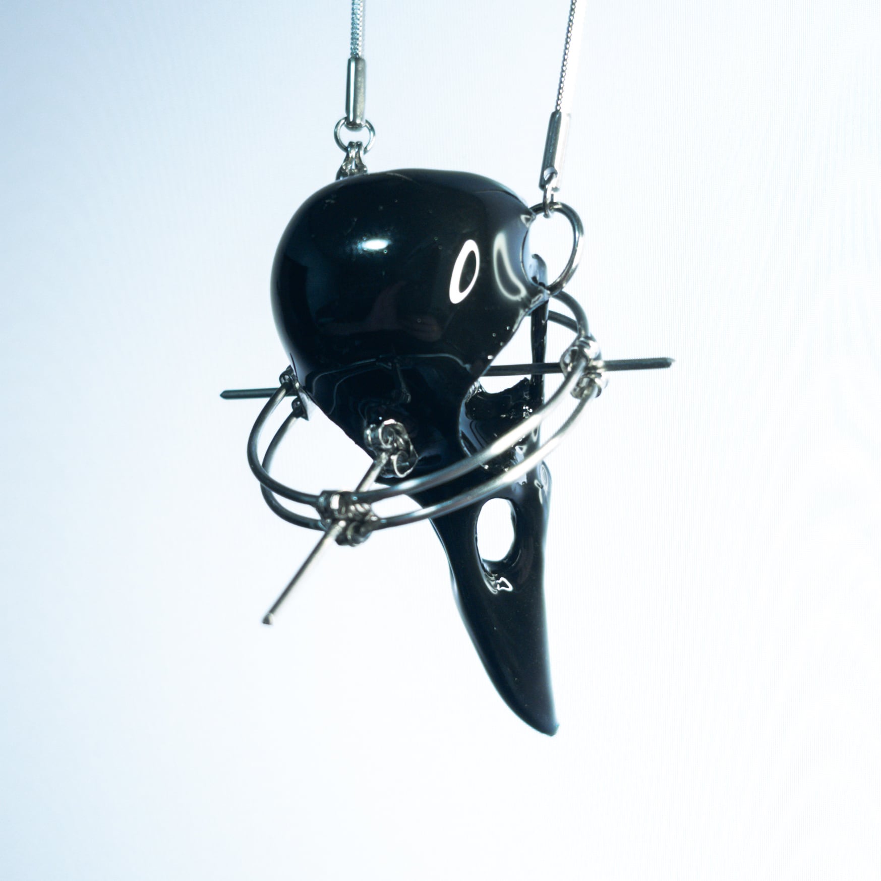 透明な液体から硬化し、職人の手作業によって研磨・改造・設計・加工された作品は、かつて海に存在したかもしれない“非生命的な骨格”を再構築したものです。石油から生まれた素材が、神聖さと死を模倣する。